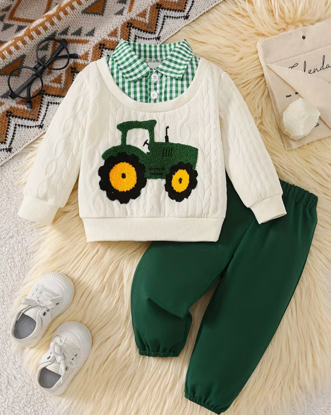 2pcs Set for Baby Boys Featuring an Embroidered Long-Sleeve Top with a Truck Design And Elastic Casual Pants