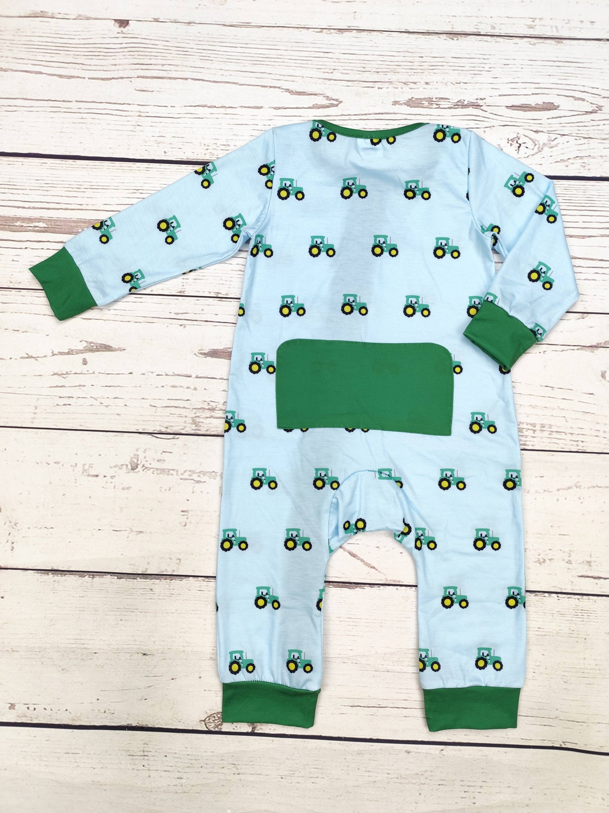 Boy Tractor Print Bamboo Zip Sleeper ETA: 3-5 Days This sleeper is made with bamboo fabric, reducing your carbon footprint while providing optimal comfort for your little one. Plus, with its zip closure, diaper changes are a breeze.