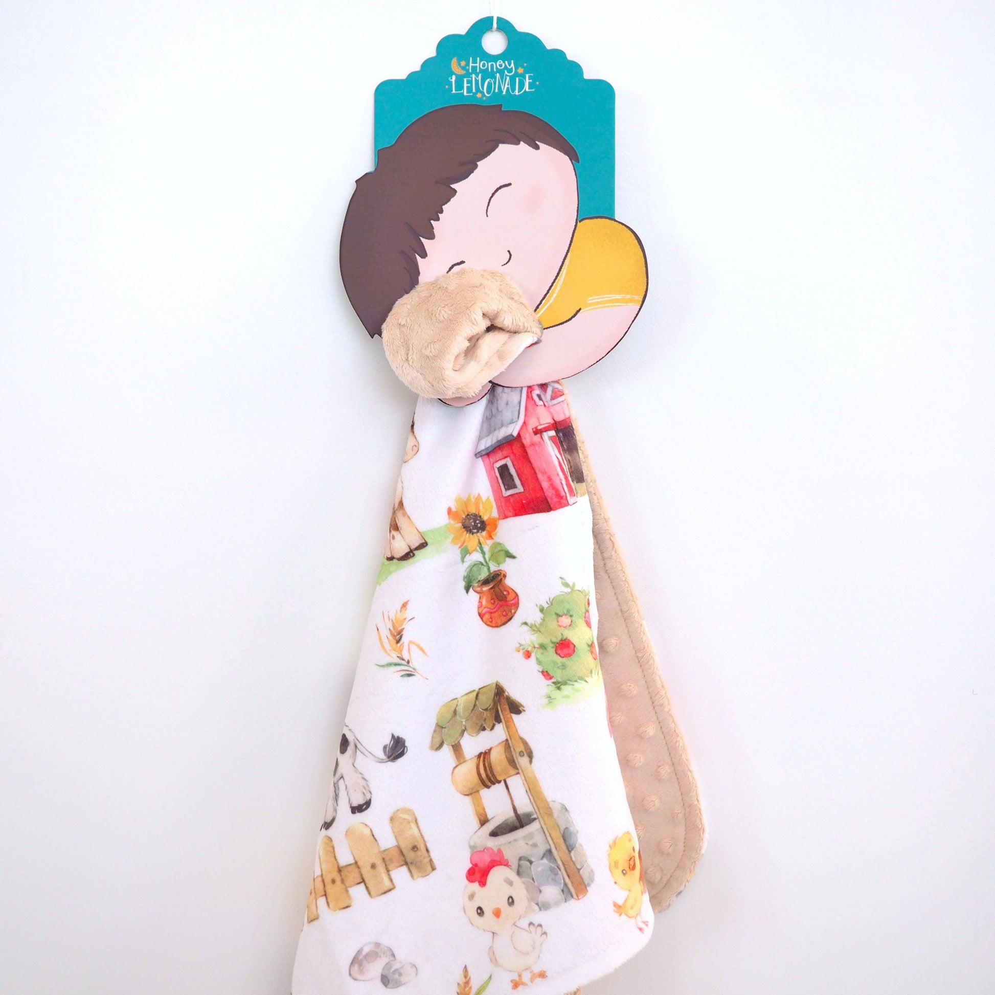 These are the same as our best-selling baby minky blankets, just smaller! What's even better? Each mini minky blanket comes ready to hang on a shelf or display wherever you please, offering both coziness and decorative charm.